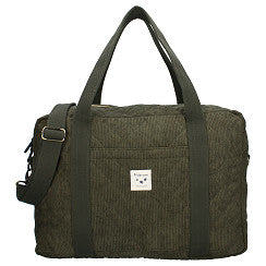 Luiertas in army groene kleur en ribstof. Deze tas straalt tijdloze elegantie uit. Met een ruim hoofdvak inclusief meerdere steekvakken voor bijvoorbeeld flesjes en luiers biedt deze tas voldoende opbergruimte voor alle benodigdheden voor een kleintje! Aan de achterkant van de luiertas is nog een kleiner vak die sluit met een rits. Draag de tas gemakkelijk met de verstelbare schouderband of hang de tas eenvoudig met de kinderwagenhaken aan je kinderwagen. Ook zijn er twee lussen aan de bovenkant waardoor de tas aan de hand te dragen is. Bij deze luiertas zit ook een bijpassend verschoonmatje inbegrepen. Het verschoonmatje heeft een formaat van 64 x 32 cm en een makkelijk afneembare binnenzijde.