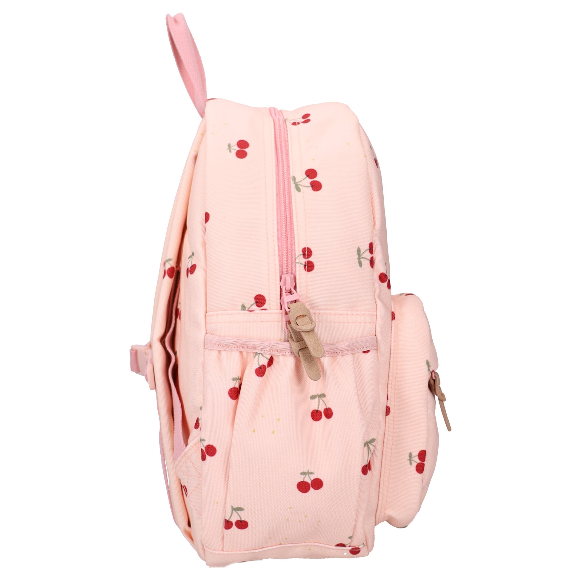 Deze tas uit de Secret Garden collectie van Kidzroom is roze van kleur en heeft een schattig ontwerp met kersjes verspreid over de tas.
